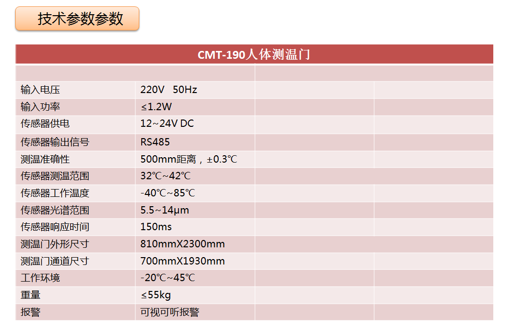 CMT-190人體溫度檢測(cè)門采用紅外熱成像測(cè)溫傳感器和非接觸紅外測(cè)溫